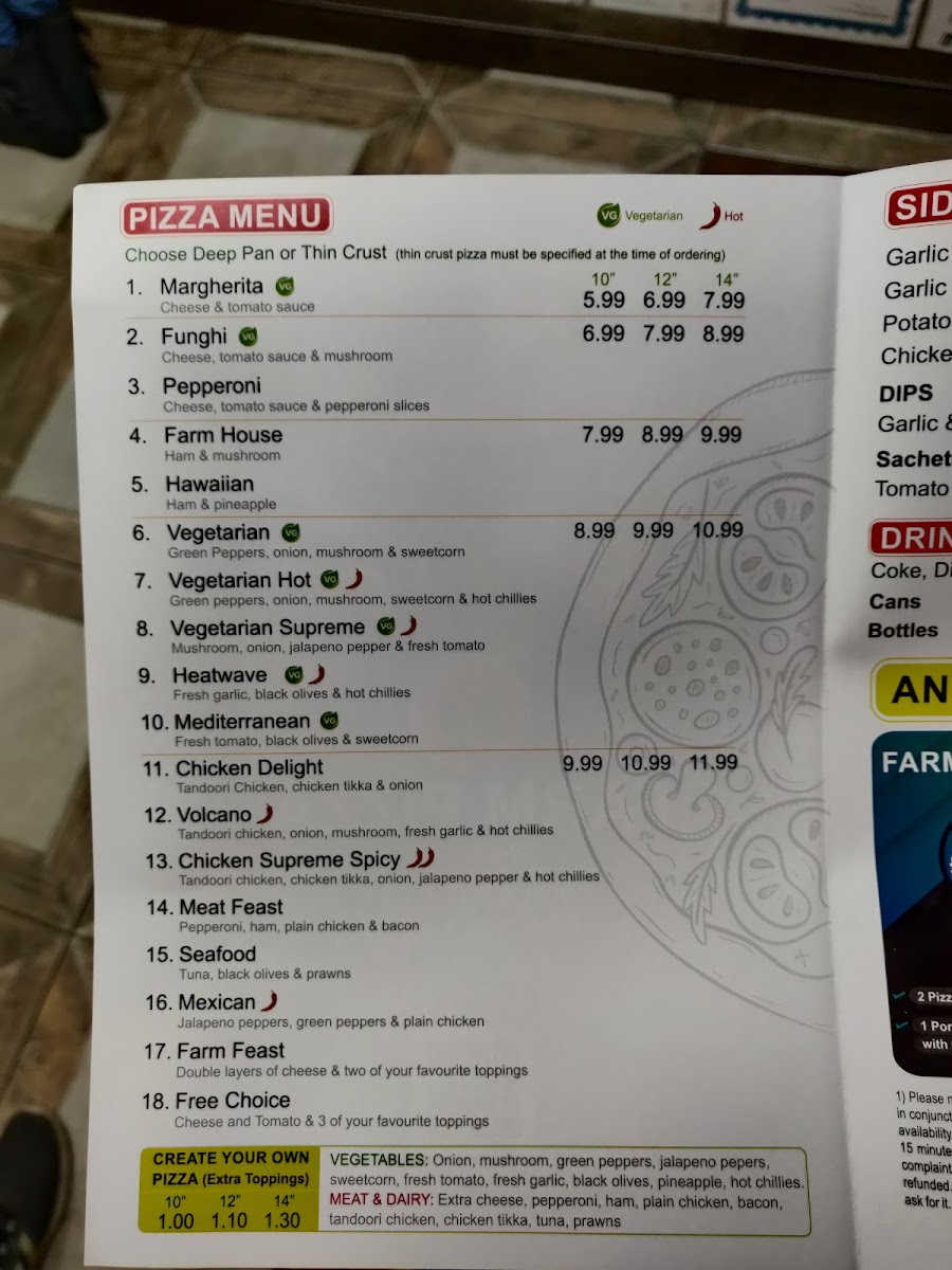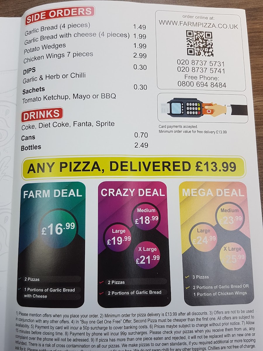 Farm Pizza offers a delightful blend of traditional and creative pizza options, nestled in the heart of Hounslow. The menu is a celebration of flavor, with something for everyone, from classic Margherita to innovative combinations that push the boundaries of pizza-making. A standout feature is their ability to balance fresh, high-quality ingredients with a quick service model, making it perfect for both casual dining and a satisfying takeaway experience.